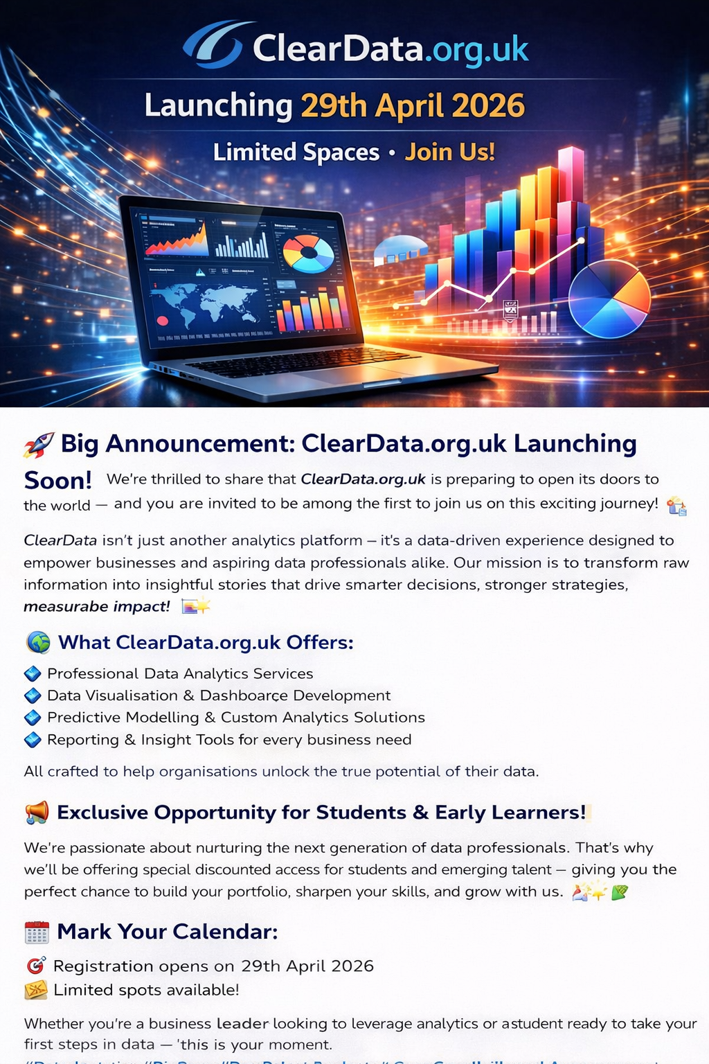 We’re thrilled to share that ClearData.org.uk is preparing to open its doors to the world — and you’re invited to be among the first to join us on this exciting journey! 🎉